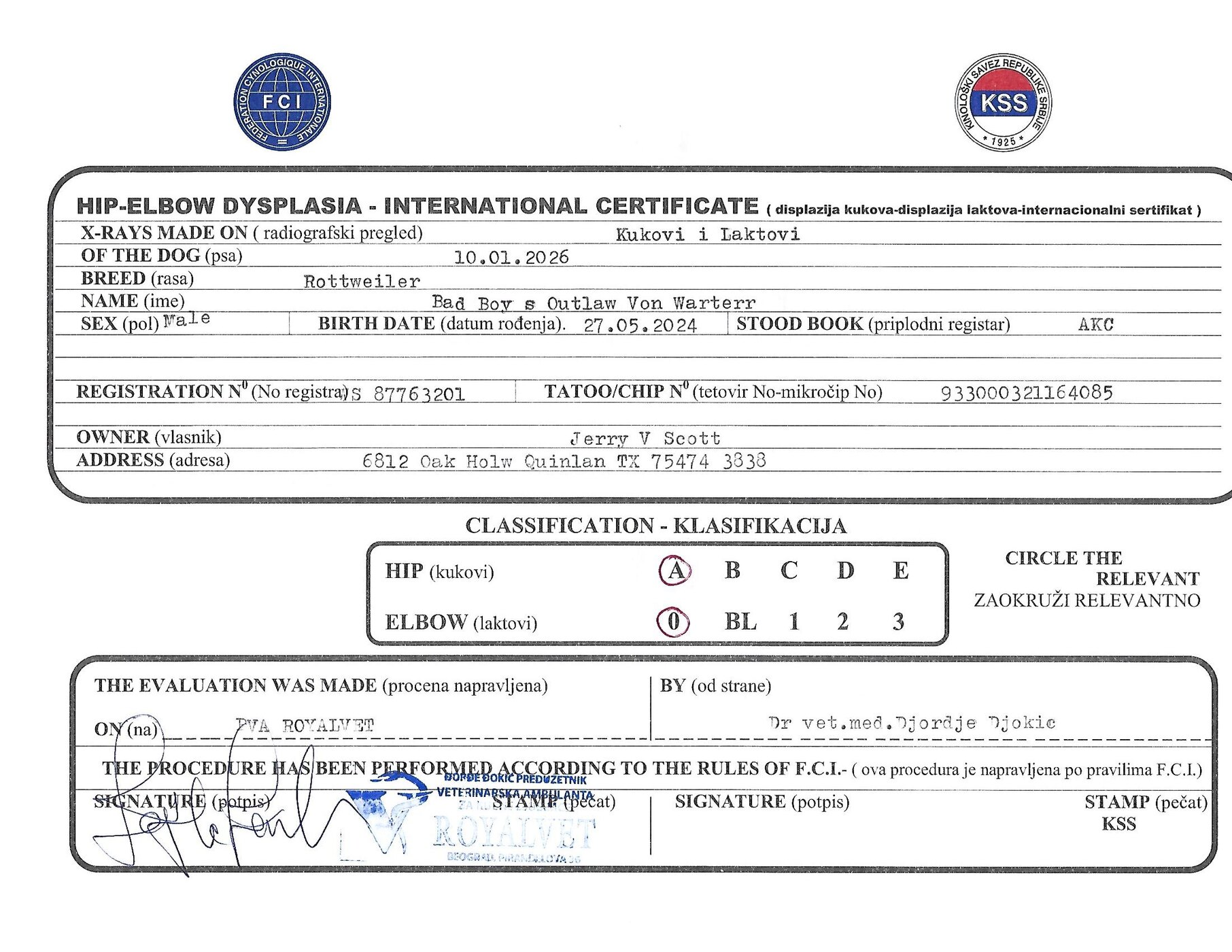 AKC Registration #WS87763201