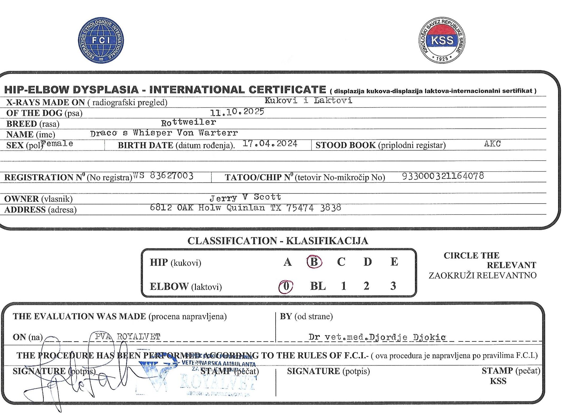- Draco's Jana Von Warterr
