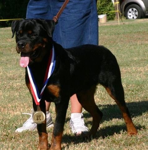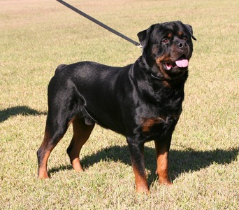 Willi is our family's favorite which is why he is our house dog. He has his father's incredible head. He has an excellent coat with beautiful markings. He has personality plus which includes singing! He is the most loving and social Rottweiler that I have ever owned. He loves everyone as well as other dogs and cats. If you want a dog that looks intimidating but is very affectionate then consider getting a pup sired by Willi!